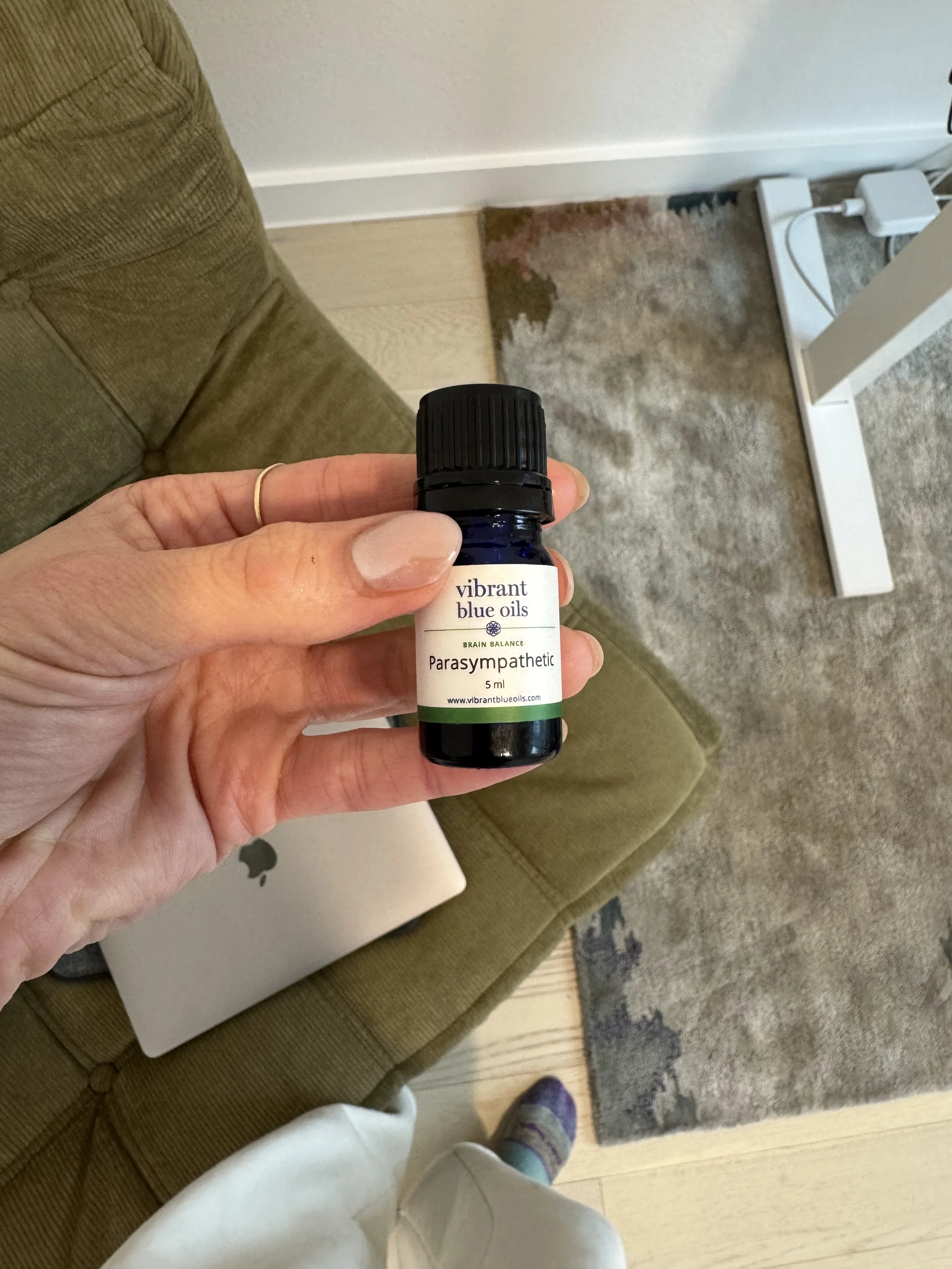 One of my favorite daily rituals is using Vibrant Blue Oils – Parasympathetic Blend, a powerful essential oil formulated to stimulate the vagus nerve and put the body into a state of rest, digest, absorb, and repair.