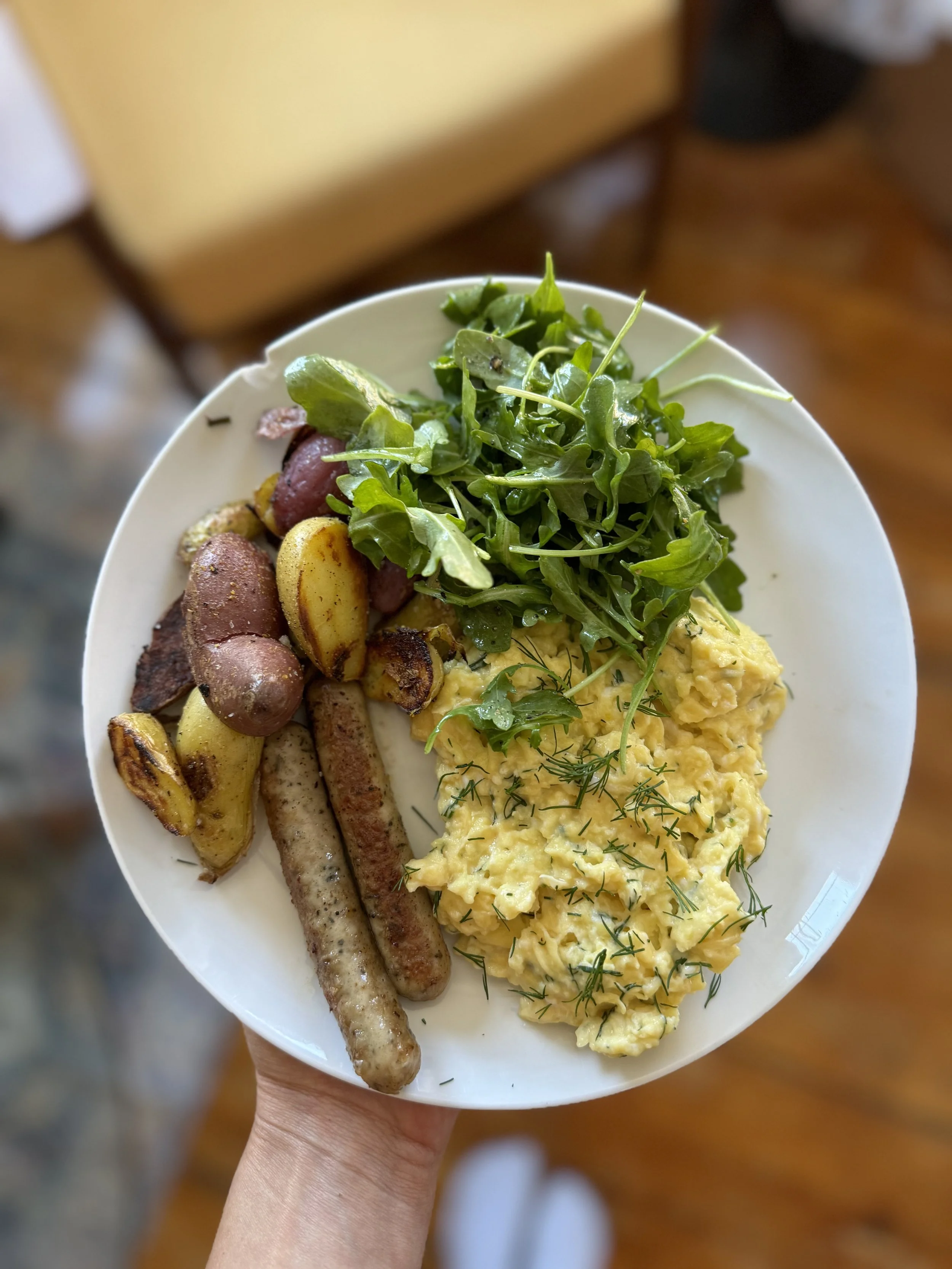 If eggs aren’t your jam, opting for grass-fed beef or organic chicken sausage is an easy way to add absorbable, high-quality protein to your morning routine. I love brands like Teton Ranch and Bilinski’s Organic Chicken Sage, served alongside toast or roasted potatoes. For a flavorful twist, chop up the sausage and toss it into a cassava or almond flour tortilla (like Siete) with arugula, goat cheese, and black beans for a protein-powered breakfast wrap.
