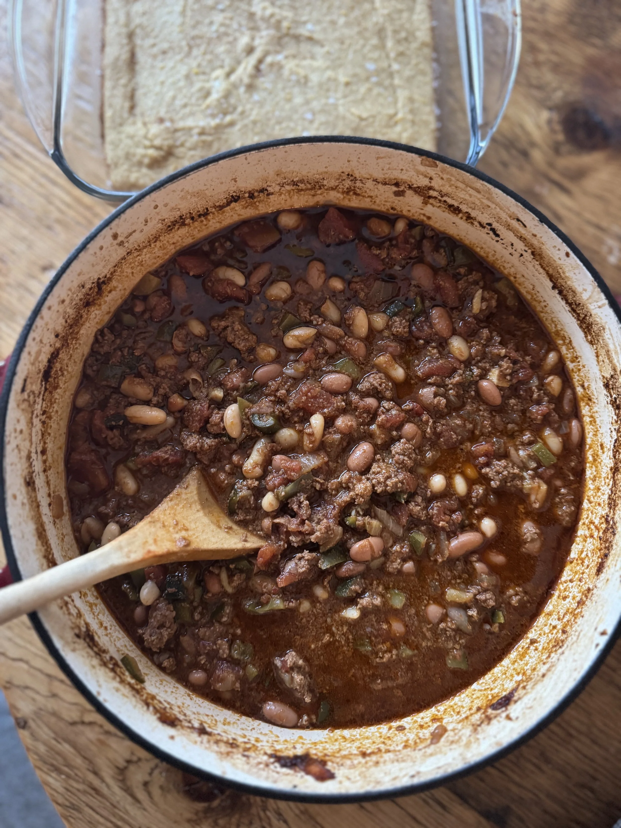 Taste and adjust the salt or chili powder as needed. If you prefer a thicker chili (my fave), simmer for an additional 5-10 minutes or leave in the oven on 200 degrees for an hour. Remove from oven and serve warm!